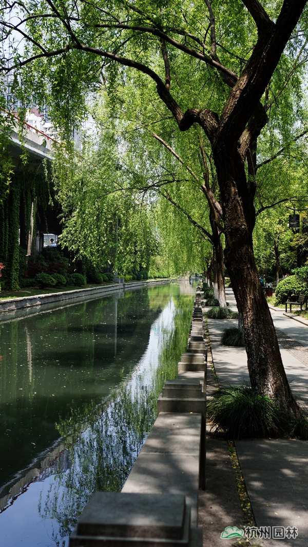 该工程位于杭城南部,施工范围为仓河下路至凤山桥,内容包括绿化种植、土方、园路平台、廊架栈道、雕塑基础、河道清淤等。工程在充分尊重历史文脉的基础上,再现了生态优美的自然环境,绿意盎然的植物、舒缓平坦的园路、饱经沧桑的古桥、栩栩如生的雕塑,与沿街的粉墙黛瓦、名人故居等遥相呼应,千年中河美景,尽显无遗。