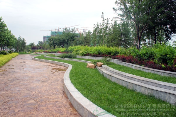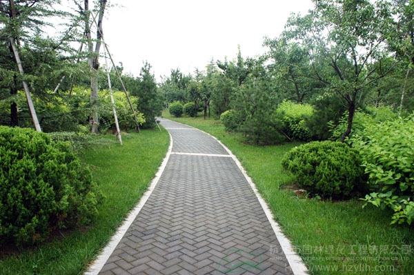 山东寿光市东环路东侧绿化改造工程(圣城街-北环路)面积9万平方米,施工范围为机动车道与非机动车道之间2.5米的隔离绿化带和30多米宽的路侧绿化带,施工内容包括土方地形整理、绿化种植、园路铺装、景石摆放、景观小品营建等。2009年9月开工,2010年7月竣工。经过2年的精心养护,如今,这里树木葱郁,花草繁茂,一路走来,随着多种风格的园路在脚下延伸,风景也在眼前不断变化。