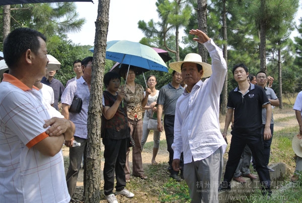 当天行程的最后一站,考察团随项志仁总经理来到金华婺城志仁花木场•精品桂花园。据项总介绍,花木场始创于70年代 ,以培养绿化苗木和观赏花卉为主,生产规模和销售网络在不断壮大,目前以桂花为主导品种。我们所到的精品桂花园内,几十个品种的桂花成片栽植,具有相当可观的市场价值。