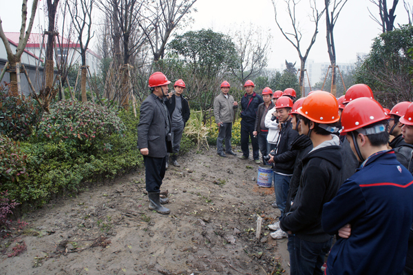作为被杭州人事局授予的“杭州市大学生企业实训基地”,公司一直为浙江理工大学、丽水职业技术学院等高校的大学生提供实践学习的机会。今天的参观,李总以中国·国际城景观工程这一高标准的项目为范本,不但向同学们介绍了许多课本上学不到的园林设计知识,而且从另一个方面展现了公司对设计和施工高质量、高规格的要求,可以说是给大家上了一堂生动的园林教学实践课。