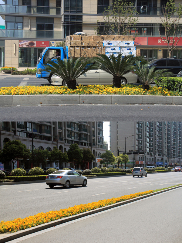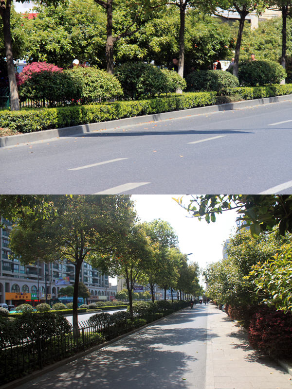 凤起东路上秋涛路至新塘路的这段绿化,正是由公司施工的。春日明媚的阳光下,这段道路中间的隔离带里,修剪得整齐一致的灌木,一眼望去,绿色满目,特别是鹅黄色的嫩叶,有着不同于老叶的青翠,昭示着生机无限,使司机在行车的途中视野清晰、开阔通透;道路两侧的隔离带里,枝叶细密的香樟挡住了直射下来的阳光,洒下满地绿荫,为行人撑起了一道清凉的“绿伞”;十字路口的小花坛里,黄色、紫色的三色瑾灿烂地盛开,为等待红灯的行人和司机带来春天的气息。整条道路的绿化看起来清新养眼,不管是开车行驶的司机还是慢步而行的路人,都能感受到闲适和惬意。
