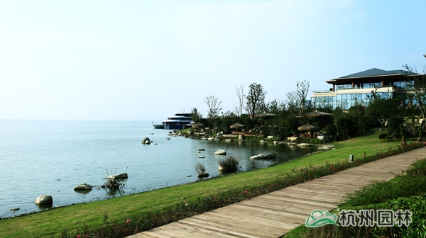 以人为本,尊重自然,贯穿于设计到施工的各个环节。该项目紧临东太湖,为了最大限度地保护太湖水域环境,各个施工环节中,因地制宜,因材施用,在驳岸处理中,通过草坪入水、水生植物种植、景石运用等方法,在充分保护原有湖岸的基础上,加强对湖水水质的净化,营造出生态、自然的湖岸景观,成为项目中的一景。此外,种植的植物,大量选用当地乡土树种,既营造出浓郁的景观特色,又有利于提高植物的成活率,减少后期的养护费用,有效节约了工程成本。