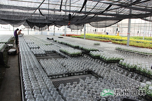 杭州画境种业有限公司径山基地基础建设已于2014年基本完工,包括荫棚地块建设、基质搅拌、办公室、仓库等,其中,新建的温室大棚已全面投入使用,由公司自行组培的16万棵火焰南天竹也进入了炼苗阶段,画境种业的员工和工人们一起,通力合作,争取以最高的效率完成炼苗工作,总经理黄民强也亲临现场,给大家指导与支持。在领导的关心下,大家信心倍增,计划在一周内完成全部炼苗工作。火焰南天竹,是公司组培研发生产的新品种,它植株低矮,枝叶密集;幼叶及冬季叶亮红色至紫红色,初秋叶变红色,比南天竹红色叶深,变色期早;喜温暖湿润、通风良好的半阴环境,较耐寒,生长较快,在园林景观中的应用比较广泛。