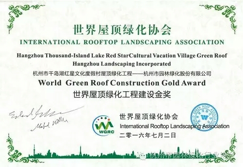 近日,在云南昆明召开的2016世界生态城市与屋顶绿化大会上,协会会员企业——米兰体育平台承建的杭州市千岛湖红星文化度假村屋顶绿化工程荣获“世界屋顶绿化工程建设金奖”。