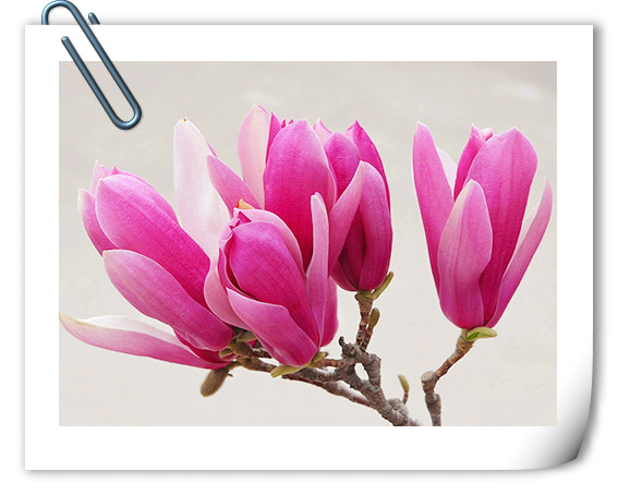 不同颜色的玉兰中,开得最早的,当数白玉兰,那纯正的白色花朵,纤尘不染,清雅秀丽中有着瓷器的温润质感,仿佛一件件洁白的工艺品,很想将它捧在手心,慢慢品味它的精致与美丽。紫色的玉兰花,则有着淡淡的华贵气质,那含苞欲放的花朵,酷似一枝枝饱蘸紫色墨水的毛笔,挥洒自如间,描绘出独属于春天的明艳风情。黄色的玉兰花,呈现出淡淡的鹅黄色,柔柔的,嫩嫩的,带着清新宁静的气息,有着超凡脱俗的美。不同颜色的玉兰花有着不同的美丽,但每一种都那么迷人,充满灵动的气息。