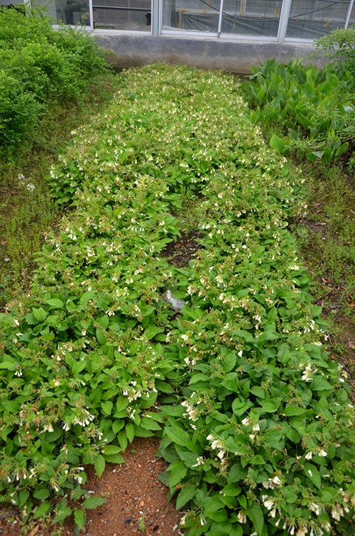 我是紫草科聚合草属植物,丛生型多年生草本,作为高产饲料作物被世界各地广为熟知,全株被向下稍弧曲的硬毛和短伏毛,聚伞花序,花序含多数花,花冠黄白色,花期3-5月,株高20-30cm。低矮紧凑可作为林下地被使用。还为低矮植物找不到发愁吗?找我,找我,找我!