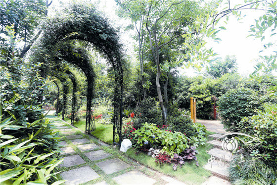 林荫景观 结合原有桂花,中层配植美人蕉、小叶蚊母,底层种植玉簪、落新妇、百子莲、九头狮子草、火炬花等,形成以粉色为主色调的林荫景观。