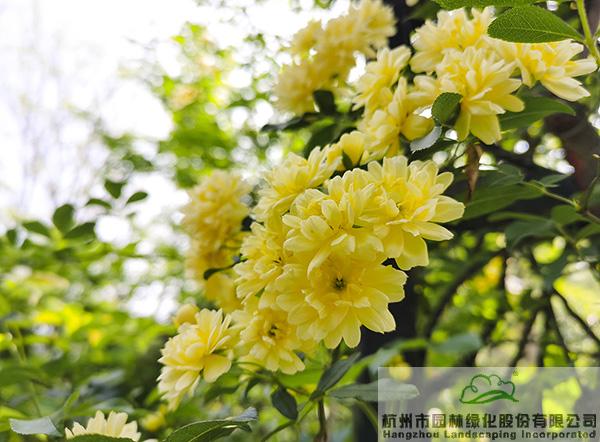 木香开得正艳,走在木香长廊下,宛如行走在花间。