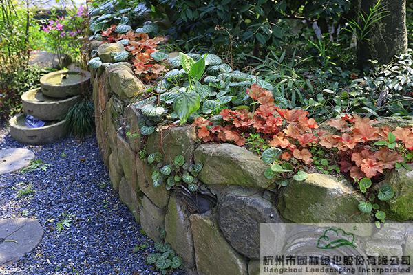 矾根也不甘寂寞,亮丽的叶色让矮墙充满生机。