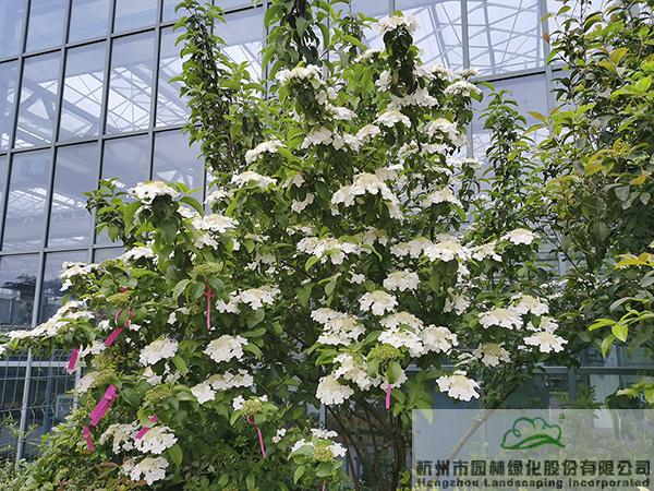 琼花正迎来盛花期,一朵朵硕大的花朵宛若群蝶起舞,点亮了一角的风景。