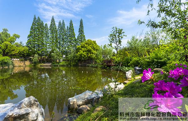 绿树红花,流水淙淙,