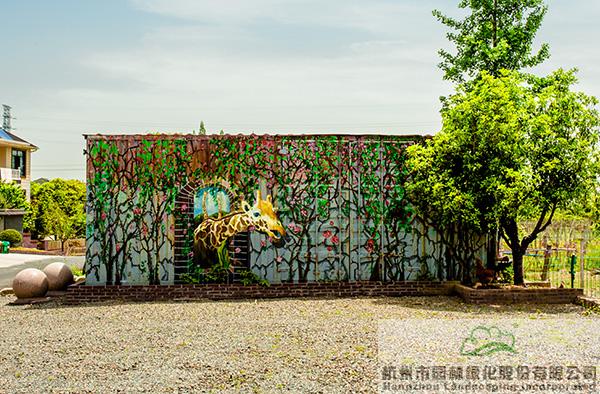 以旧青砖与多种元素搭配的景墙,