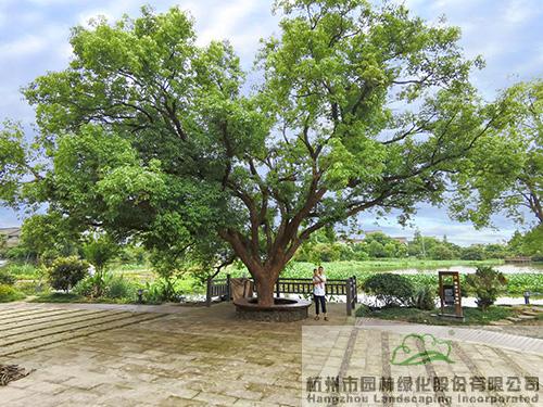 村前的小公园,是村民饭后散步、乘凉的好去处。用旧青砖搭配旧瓦片、老石板、老石磨等营造的低矮景墙,在划分空间的同时,更成为一种怀旧情感的寄托,与白墙黑瓦的建筑遥相呼应,营造出古朴、宁静的氛围。几株大香樟树枝繁叶茂,洒下一地绿荫,成为村民乘凉的好去处,它们陪伴村民走过了几十年的风雨,见证了村庄的发展变迁,寄托着村民的乡愁。为了保护它们,施工时禁止大型机械进场,全部采用人工作业,并在周边进行保护,搭建防腐木树池坐凳,既可以保护大树,又可供村民在此闲坐。植物配置充分考虑当地的民风民俗,听取村民意愿,种植枇杷、桃树、梨树、苹果树、红叶李、柿子树等果树,搭配桂花、无患子、银杏等乡土树种,营造出浓郁的乡村田园风情。