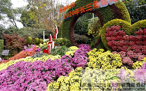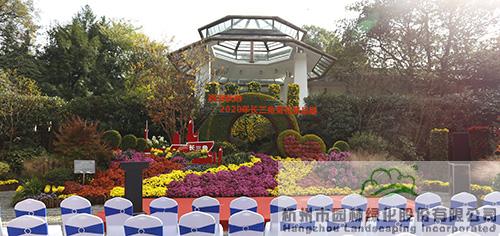 由杭园股份设计及施工的展品《江海相望 菊影弄潮》,以传统园林中的月门为主景,结合浪、船、影等构图元素,运用花带、花球、绿雕等形式,以菊的情致携西湖的精致,动静结合,营造出潮起江海、劈浪前行,守望相助、璀璨芳华的生动意境。此景象征着新时代长三角一体化“引航远帆”的涌动和发展;讲述着中华儿女携手抗疫、共克时艰的动人故事。