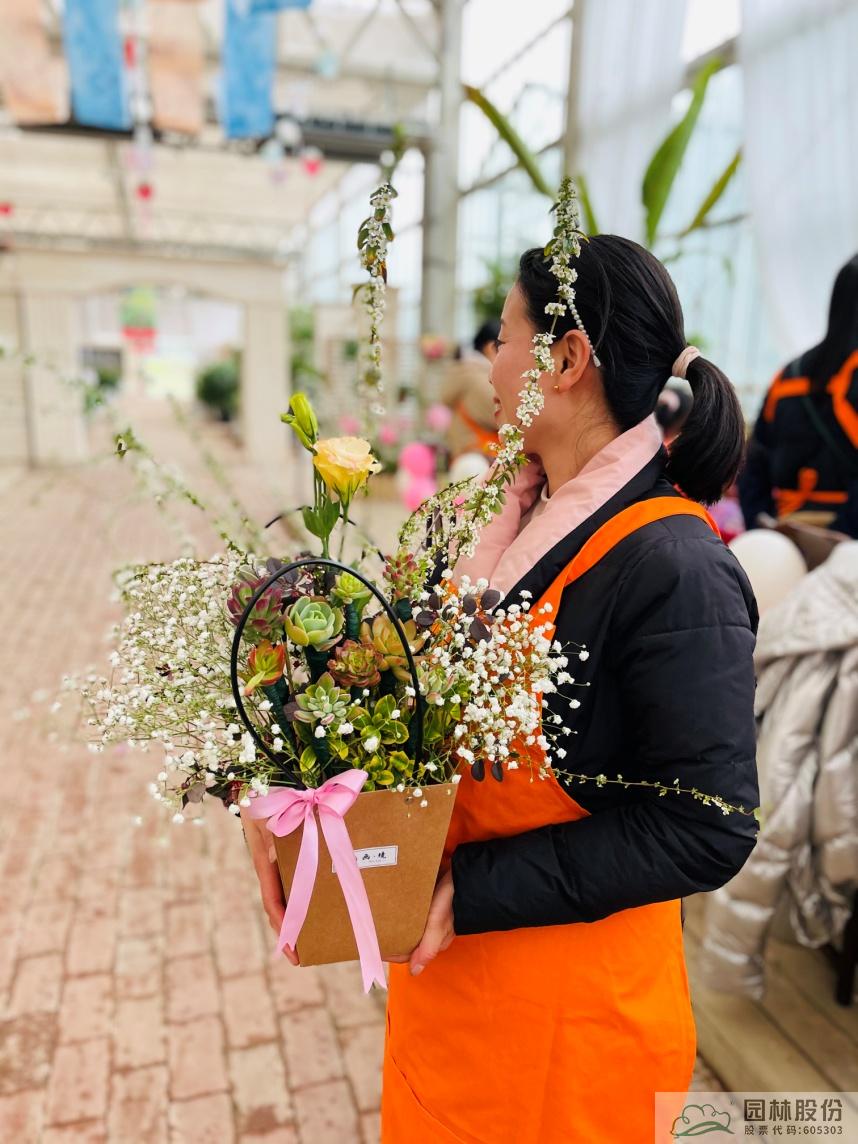 这些花材会像变魔术一样组合成一盆盆精美的手拎礼品袋鲜花,如花艺师手上演示的这一盆,是不是很期待呢?