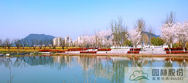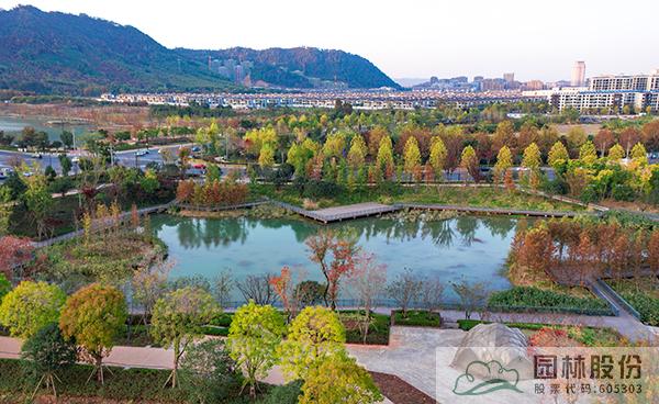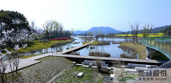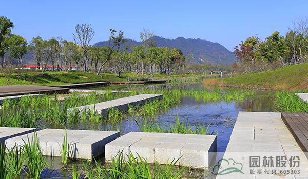 项目还充分利用浒溪及灵峰湖沿线的湖湾和众多洼地,引水入园,打造雨水花园、下沉式绿地等,通过丰富的植物配置与景观小品,形成沿湖而生的各个景点,并设置各色景观桥连通内塘与外湖的生态通道,将周边景点有机串连。花木葳蕤景色各异,湖光山色相映成趣,整个浒溪沿线形成一个可循环的生态系统,有效改善和美化了周边环境,展现可持续发展的造园理念。