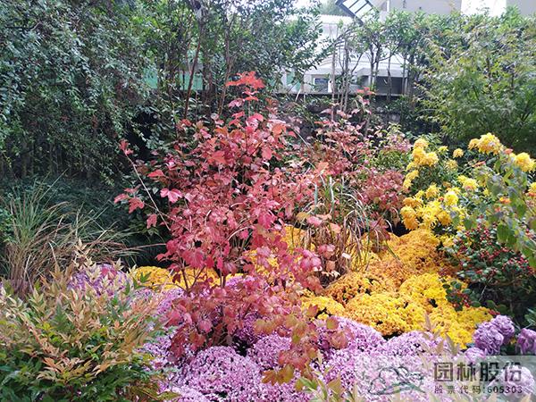 本次花境景观中的主体虽是菊花,如球菊、蟹爪菊、乒乓菊、芙蓉菊等,但点缀其中的植物优良品种,使得整体花境更具独特魅力。