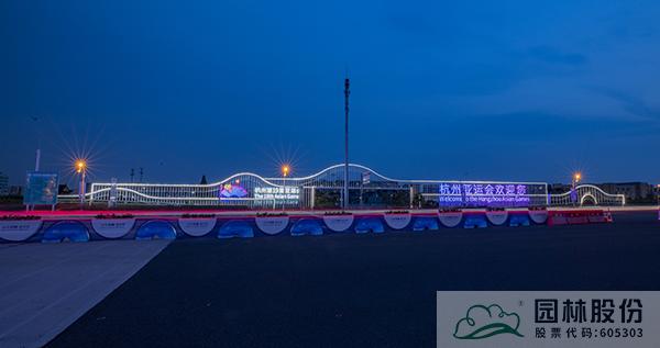 在北侧迎宾区打造绿化景观,杭州米兰体育平台以匠心雕琢,以细节致胜,通过微地形处置,营造开合有致的多变空间,植物配置以银杏、黄山栾树、丹桂等色叶树种为背景基调,搭配长效花境组团,营造线条流畅大气、四季风景各异的景观风貌。后期,又加入了亚运会吉祥物、道旗装饰等,为花满杭城的亚运氛围增色添彩。
