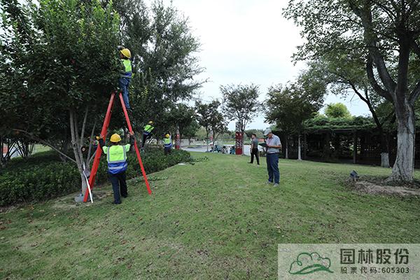 本次活动设在在江苏省宿迁市宿豫区城区养护项目,采取线上观赛线下竞赛的模式,参与的项目部有宿豫区城区绿化管养项目、泗阳县公共绿地管养项目等4个项目部共计20余人参与了本次竞赛。比赛共分9个组分别在90分钟内完成桂花和海棠的修剪。赛前,公司研究院主任沈柏春对修剪的要求和要点进行现场修剪讲解。为了赛事公平公正,参赛选手由抽签决定修剪树种,并邀请行业专家及公司技术能手组成评委小组。