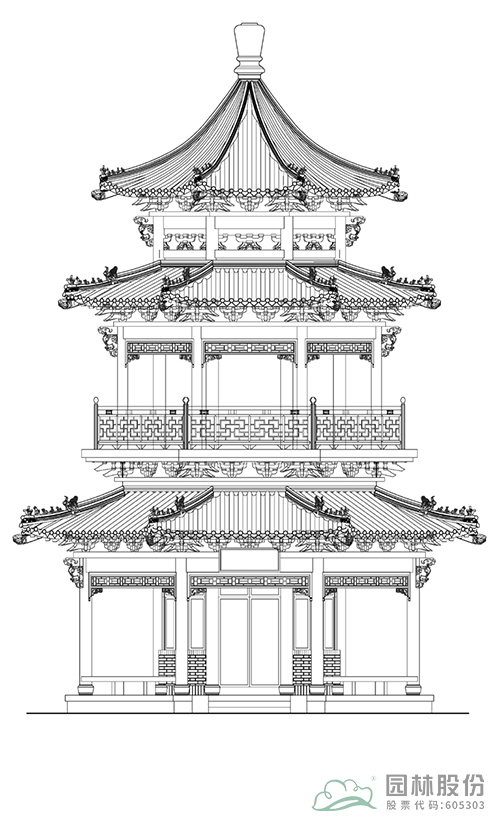 3.尺度比例:依据明清工程做法确定主体构架、屋顶结构、维护结构、台基地面和装饰构件五部分的样式、比例、材料选择等,使建筑与周围的景观相协调。