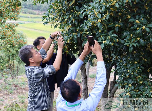 10月14日下午,参会代表参观考察了杭州米兰体育平台国家桂花种质资源库。资源库里,近百种桂花正值盛花期,奶白色的银桂和四季桂、金灿灿的金桂,橙黄色的丹桂,竞相开放,甜甜的桂花香弥漫在空气中,串串花序挂满枝头,吸引参会代表们纷纷驻足交谈拍照。