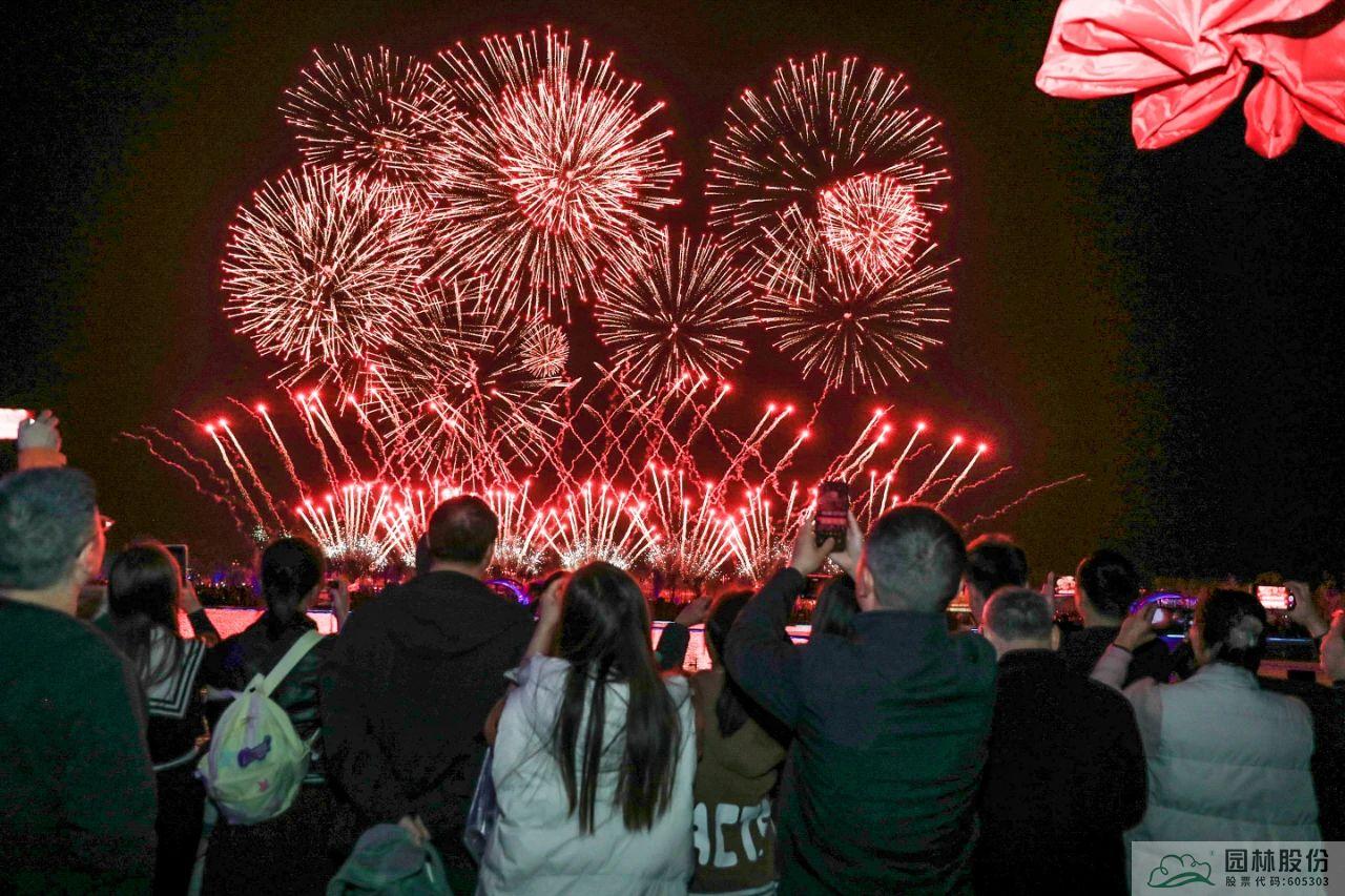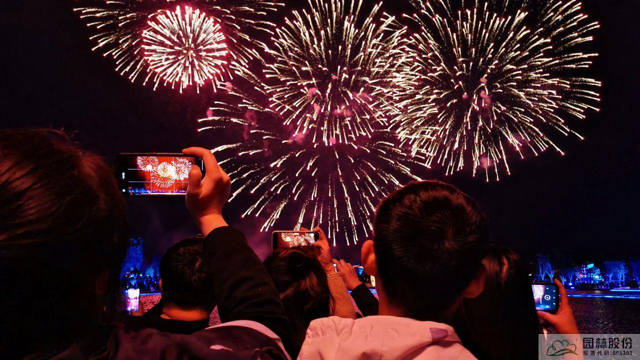 晚上8点,随着五彩斑斓的烟花次第升空绽放,花海景区顿时变成了一个欢乐的海洋。